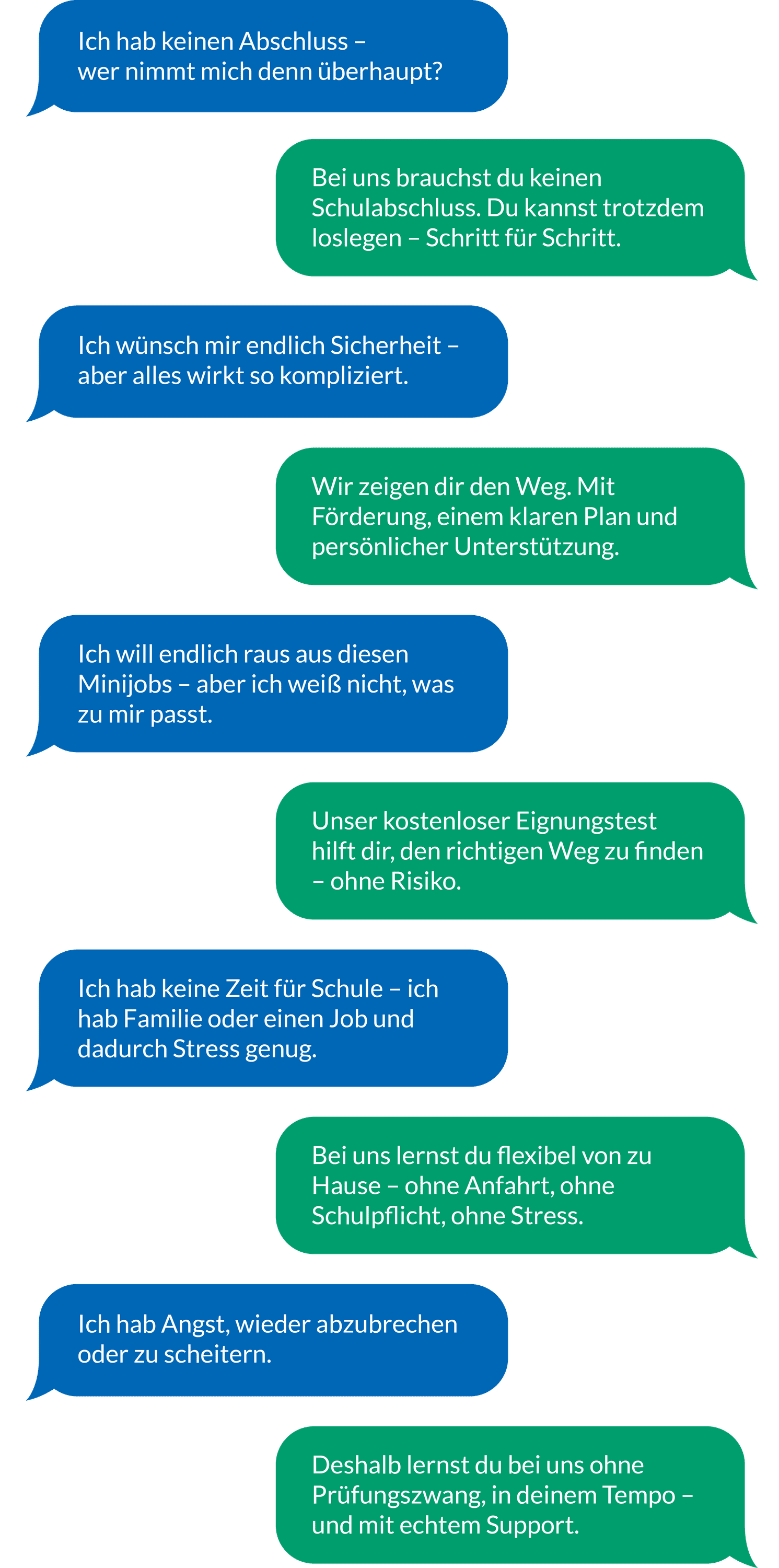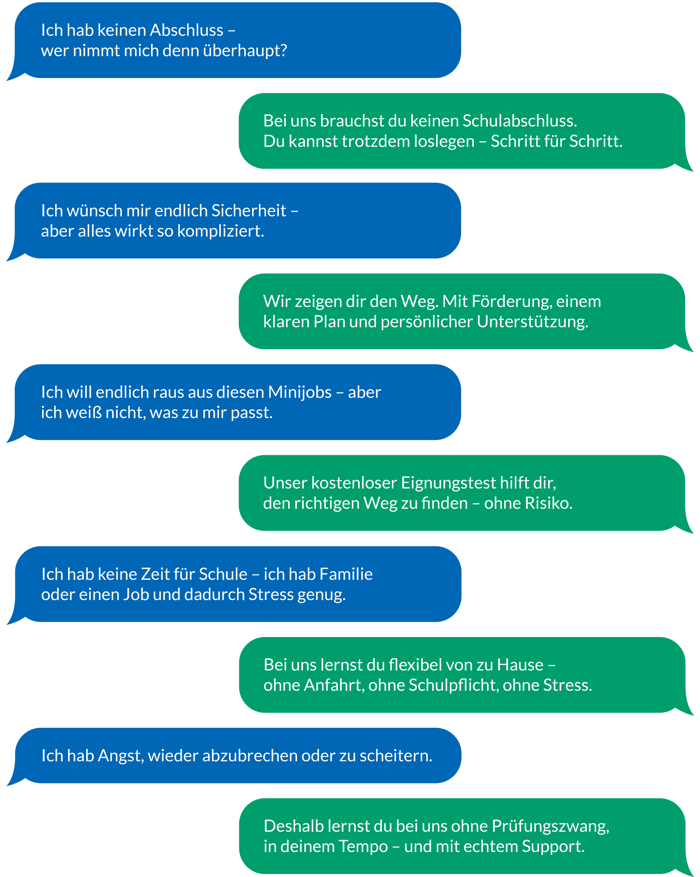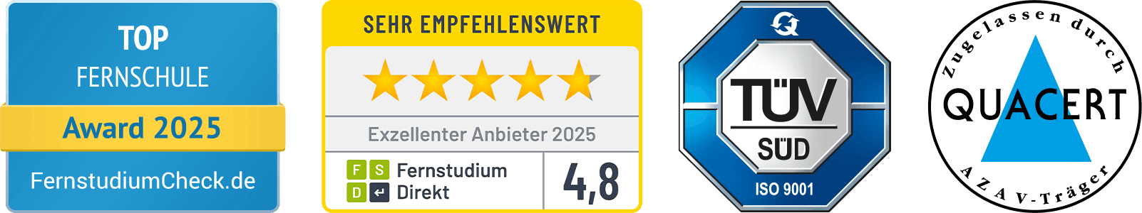 Prüfungsangst? Nicht bei uns. Es geht hier um dein Verständnis, nicht um Auswendiglernen. Die Online-Tests am Ende der Module kannst du beliebig oft wiederholen, bis du dich sicher fühlst. Wir wollen nicht aussieben, wir wollen, dass du bestehst und stolz auf dich bist.